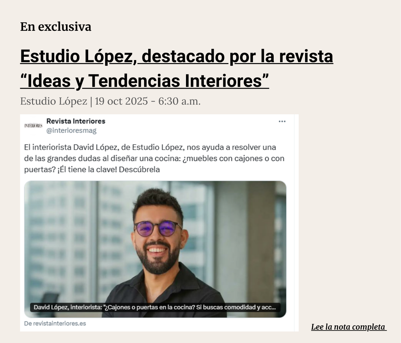 En Estudio López creemos que cada proyecto es una oportunidad para transformar los espacios y la vida de quienes los habitan. Por eso, recibir un reconocimiento de una publicación tan importante como la revista Ideas y Tendencias Interiores es motivo de orgullo y...