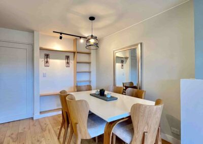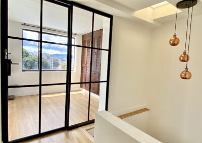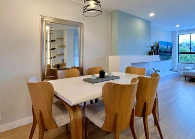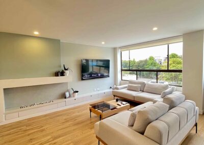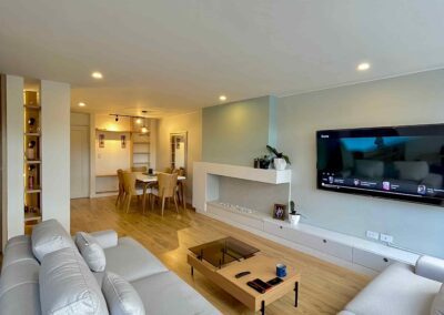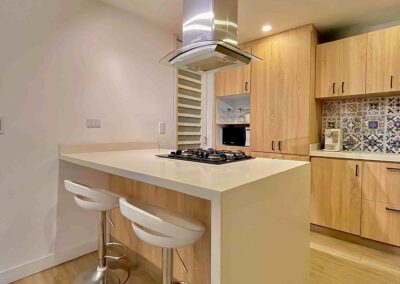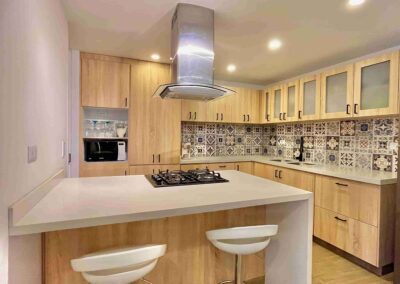 El apartamento dúplex de Evelin en el nororiente de Bogotá se transformó en un hogar lleno de luz, amplitud y personalidad. Desde el inicio, el objetivo fue claro: mejorar la distribución, aprovechar la iluminación natural y crear espacios más cómodos y conectados. El cambio más grande se dio en la zona social, donde una cocina semiabierta se convirtió en el verdadero corazón del hogar. Ahora es amplia, luminosa y con una relación fluida con el comedor y la sala, perfecta para compartir y disfrutar. Cada detalle fue pensado: mobiliario a medida, perfilería en negro, cerámica con aire vintage y toques rústicos que aportan calidez y un estilo industrial contemporáneo. El resultado es un espacio acogedor y funcional, que refleja la esencia de su propietaria y la magia del diseño de interiores en Bogotá.