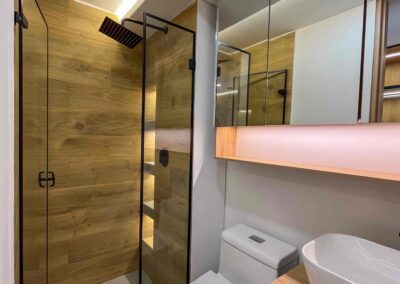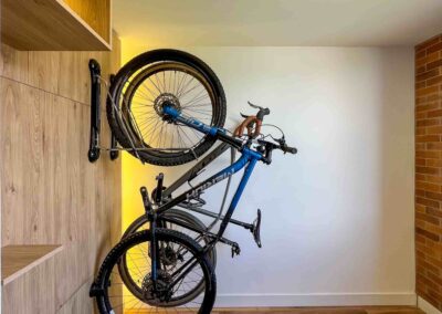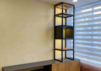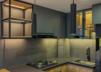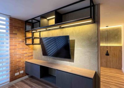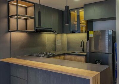 El apartamento de Andrés en Cajicá es un reflejo de estilo, personalidad y autenticidad. Desde el inicio, el proyecto de diseño y obra de acabados se pensó bajo un concepto industrial exclusivo, cuidando cada detalle para hacerlo único. La cocina, en un elegante gris oscuro, con perfilería negra y puertas en vidrio ocre, se convirtió en el corazón del hogar. Los muros en ladrillo y los tonos de madera cálida aportan equilibrio, crean un ambiente acogedor y contemporáneo. Un detalle especial fue la adaptación de un bicicletero de pared con diseño, que no solo optimiza el espacio, sino que también habla de su estilo de vida. El walk-in closet, cálido y con gran capacidad de almacenamiento, completa este apartamento pensado para inspirar y disfrutar cada día.
