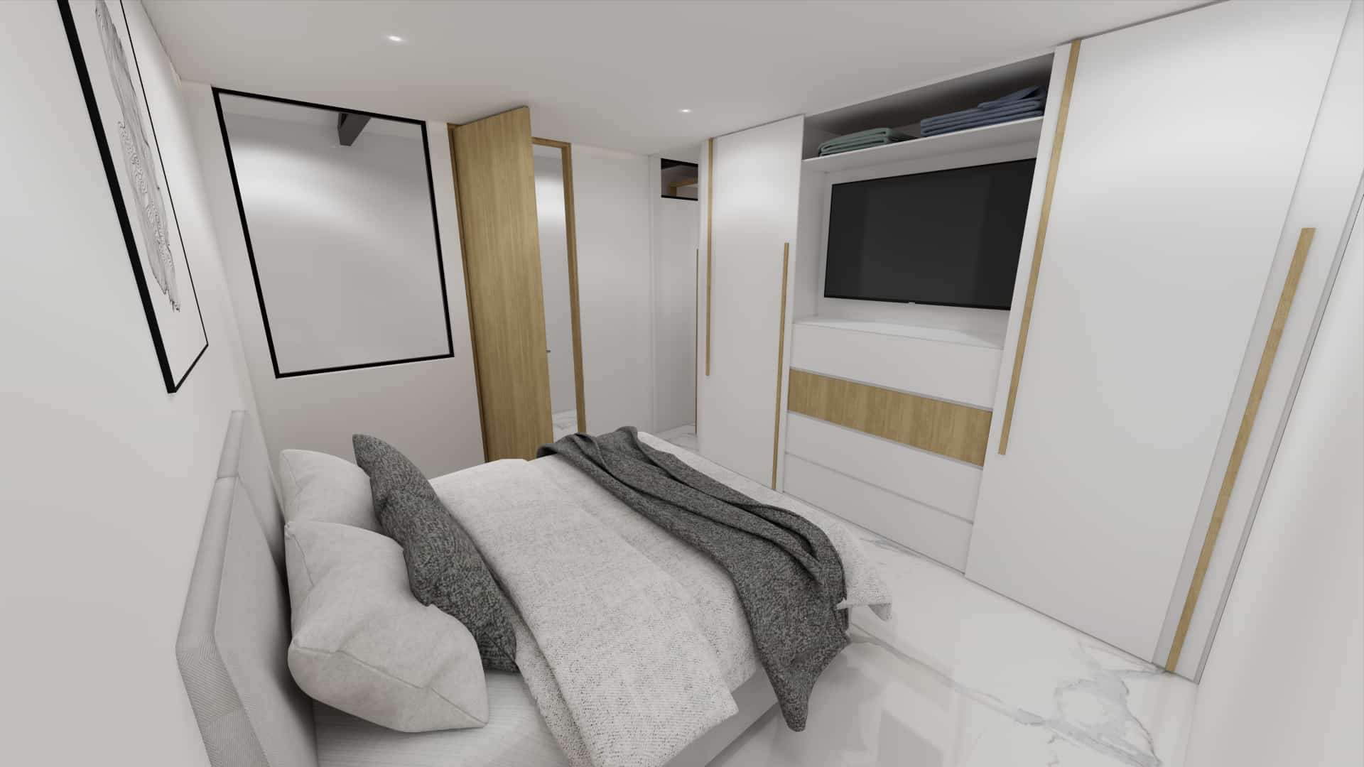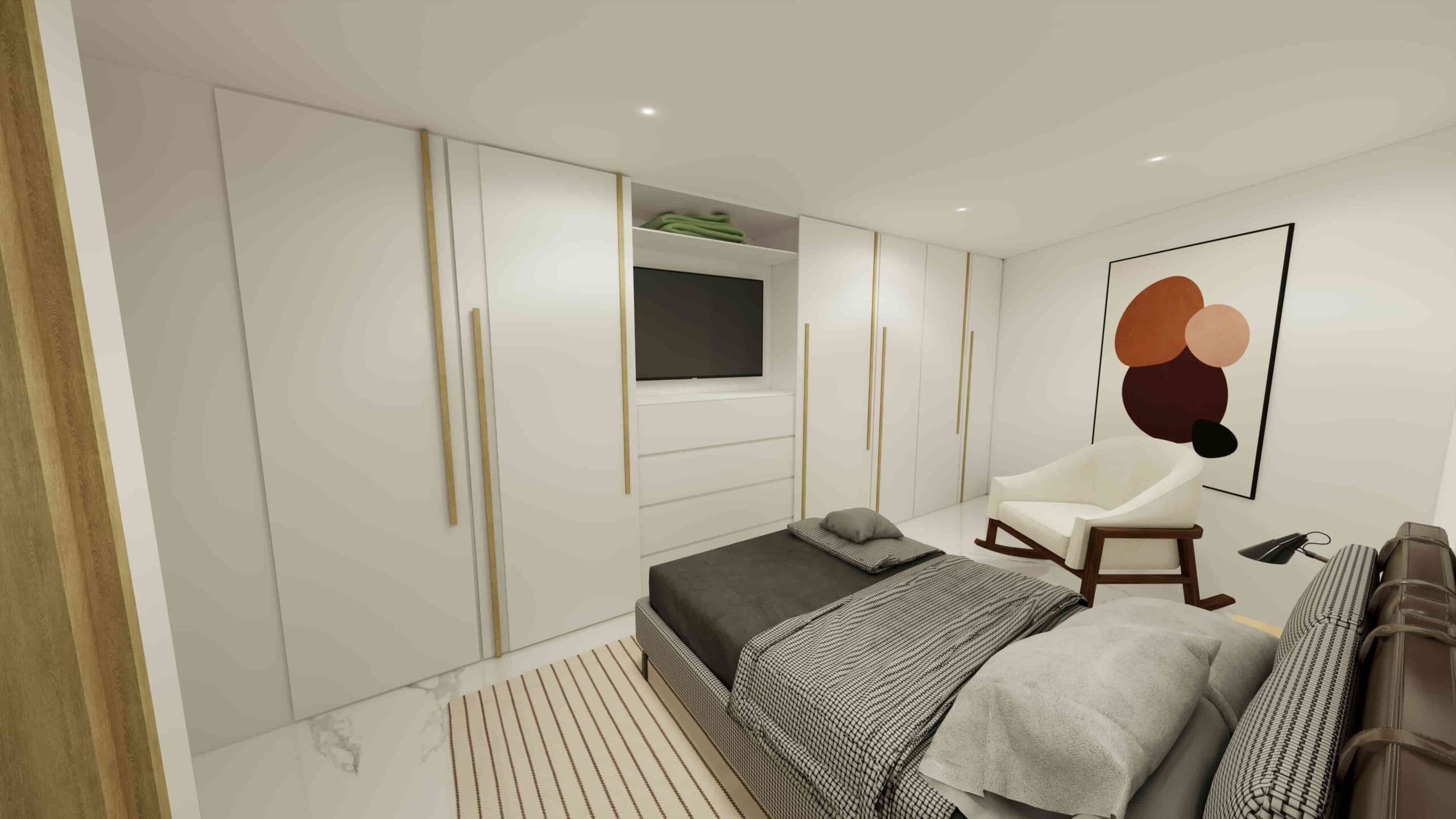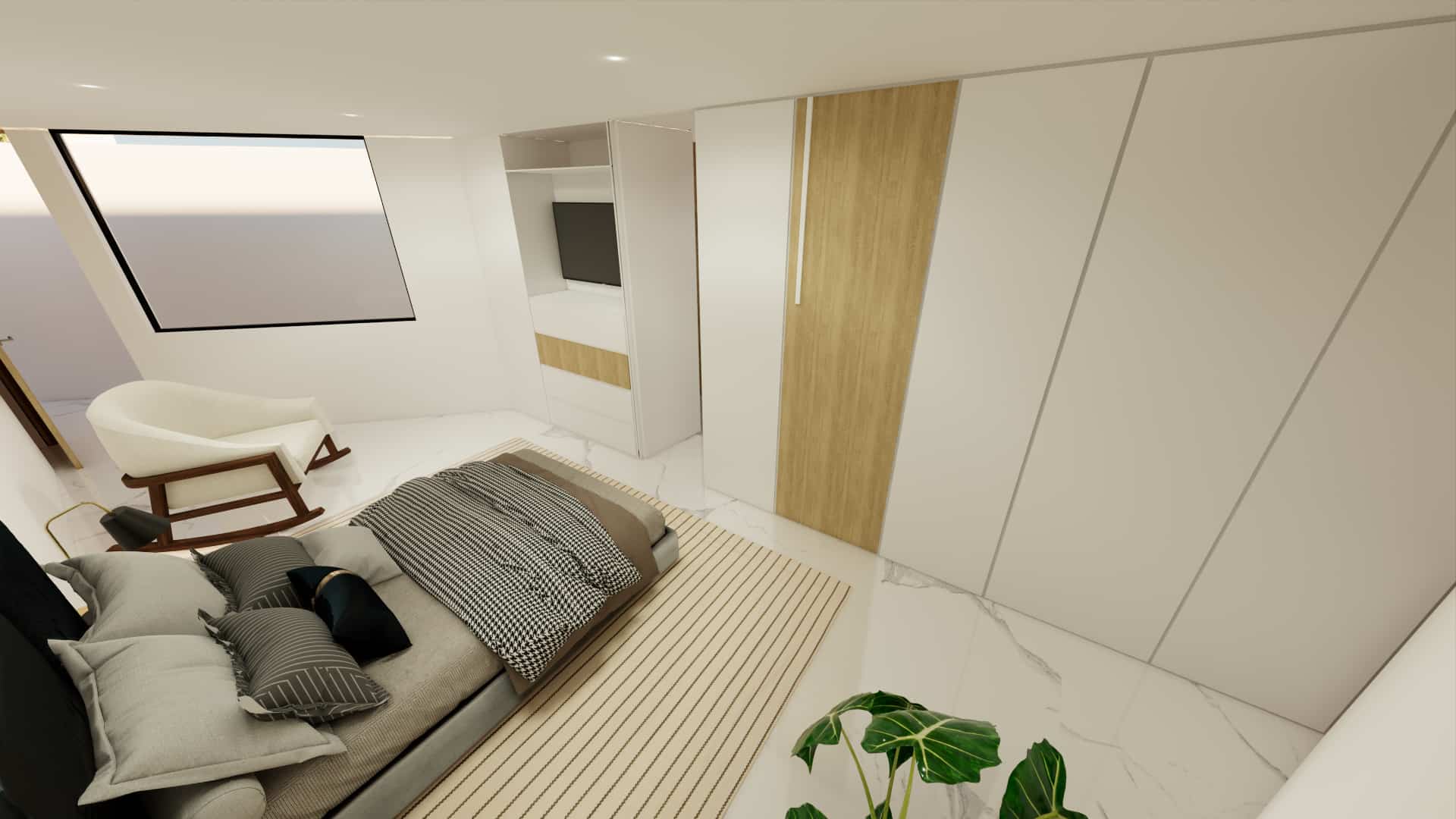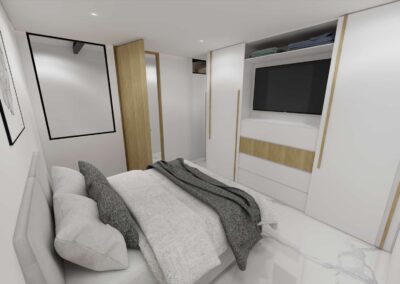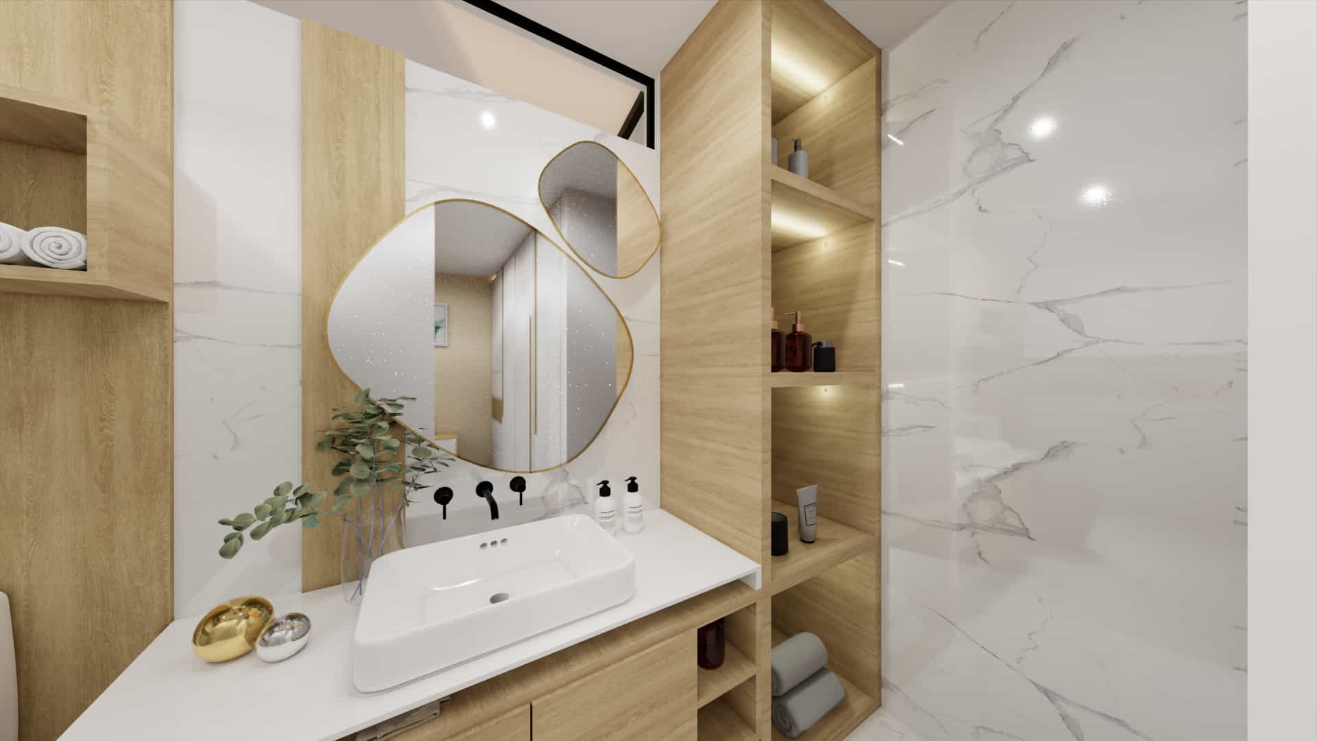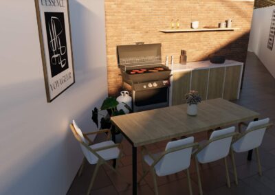 El diseño de interiores de la casa familiar de Alfredo y Katie en Agua de Dios refleja la perfecta unión entre modernidad, calidez y funcionalidad. La fachada contemporánea da la bienvenida a un interior luminoso, con pisos y paredes en blanco que amplifican los espacios y generan una atmósfera fresca y limpia. La madera cálida equilibra y aporta confort en cada rincón, mientras que los mesones en piedra sinterizada de la cocina transmiten elegancia y resistencia. La cocina, amplia y abierta, se integra a la zona social, invitando a compartir momentos en familia. La claraboya a doble altura ilumina el corazón de la casa, resaltando un jardín seco que se convierte en pieza protagonista. Cada detalle del diseño fue pensado para crear un hogar inspirador, lleno de vida, moderno y al mismo tiempo cercano a la esencia de la familia.