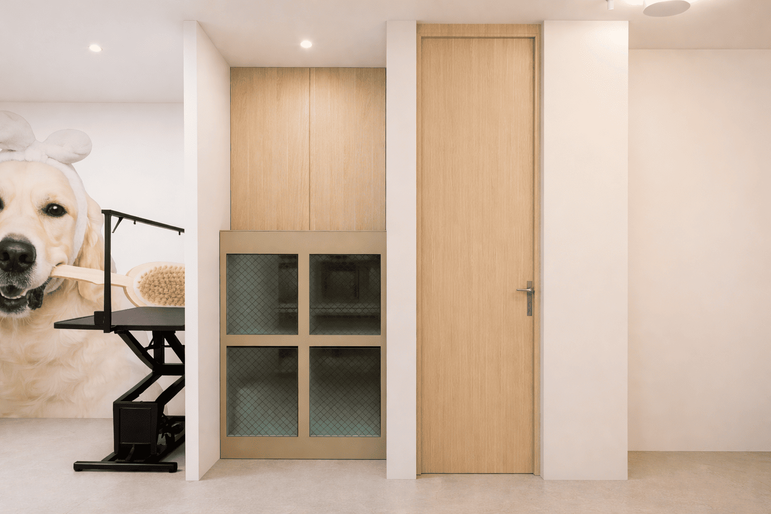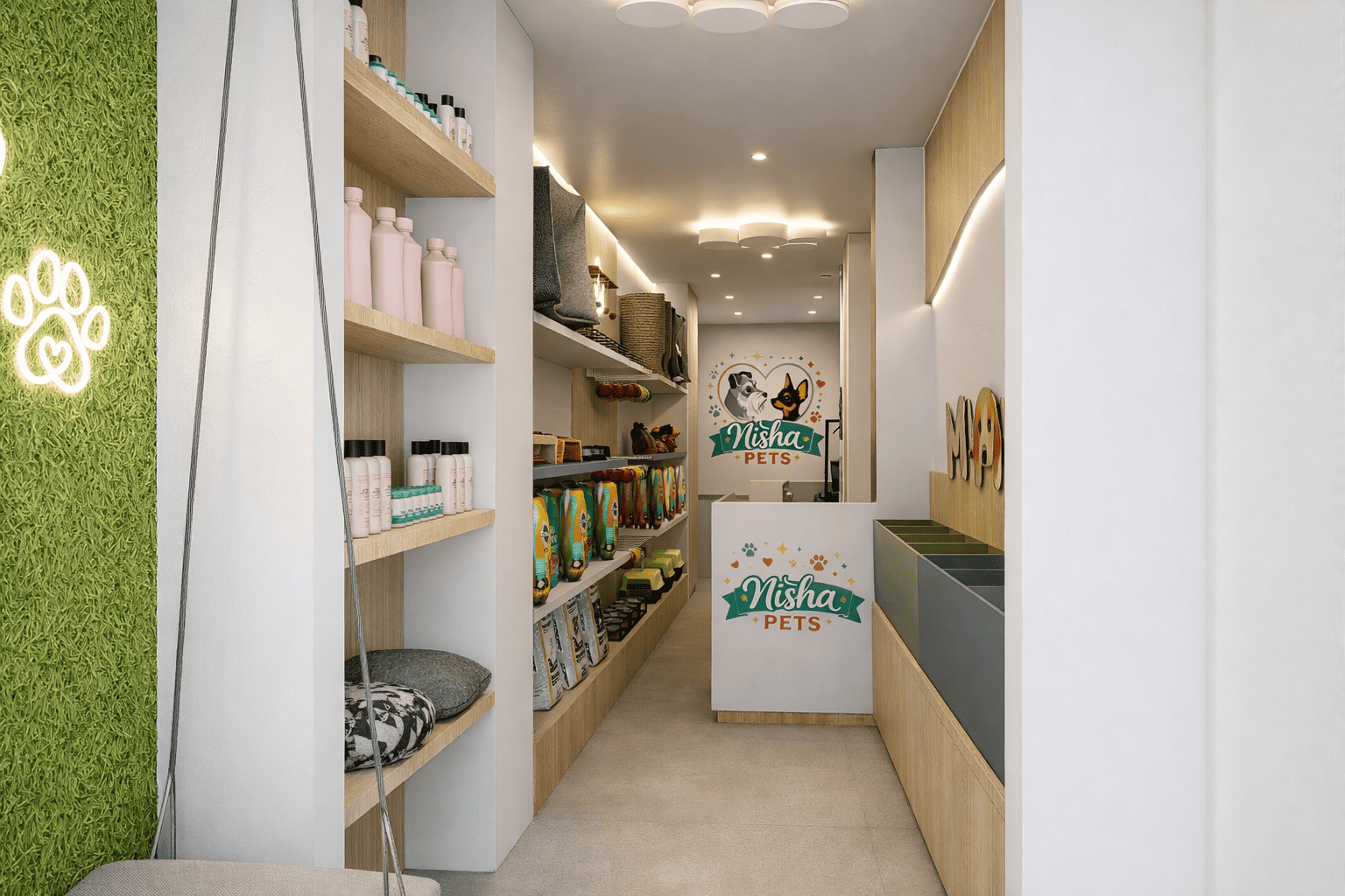 Diseñada completamente a medida bajo un estilo contemporáneo, donde cada detalle se pensó para elevar la experiencia del usuario y el bienestar de las mascotas. La propuesta combina materiales resistentes y fáciles de mantener con una estética limpia y acogedora, integrando exhibición organizada, zonas de atención y espacios funcionales para grooming. La iluminación, el mobiliario y los recorridos fueron cuidadosamente diseñados para generar comodidad, fluidez y conexión, creando un entorno atractivo, práctico y memorable para clientes y mascotas.