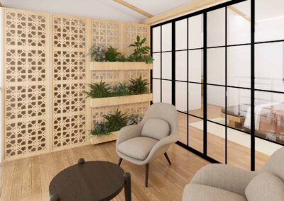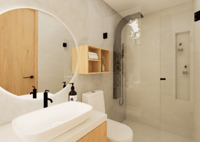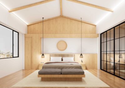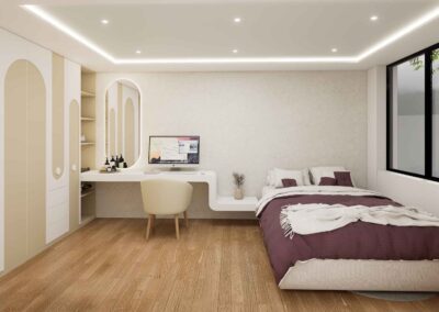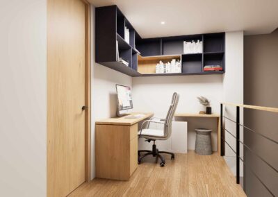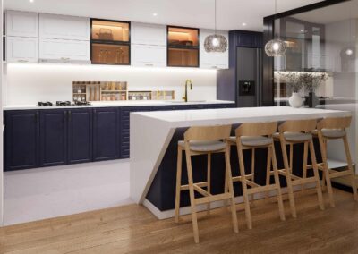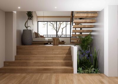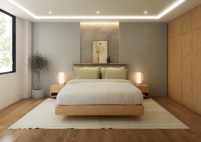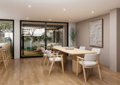 El proyecto de diseño de interiores de la casa de Javier en Bogotá buscó darle nueva vida a unos espacios amplios llenos de posibilidades. La idea fue pensar cada espacio como un lugar para compartir, disfrutar y sentirse en calma. La cocina se diseñó abierta, luminosa y con mucho carácter gracias a la mezcla de colores blanco y azul oscuro para el mobiliario, acompañada de una gran isla que se conecta naturalmente con el comedor, pensada para esas largas conversaciones familiares. Al fondo, el patio trasero se transformó en una sala relajada con cubierta y luces cálidas, el rincón perfecto para reunirse con amigos. La sala de estar se planteó con tonos terrosos y mobiliario beige para aportar calidez y elegancia. Cada habitación ahora refleja la personalidad de sus dueños, desde un espacio juvenil con aire deportivo, hasta ambientes neutros, serenos y minimalistas que transmiten confort y armonía.
