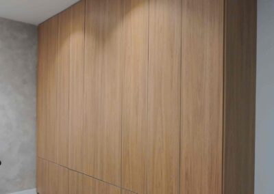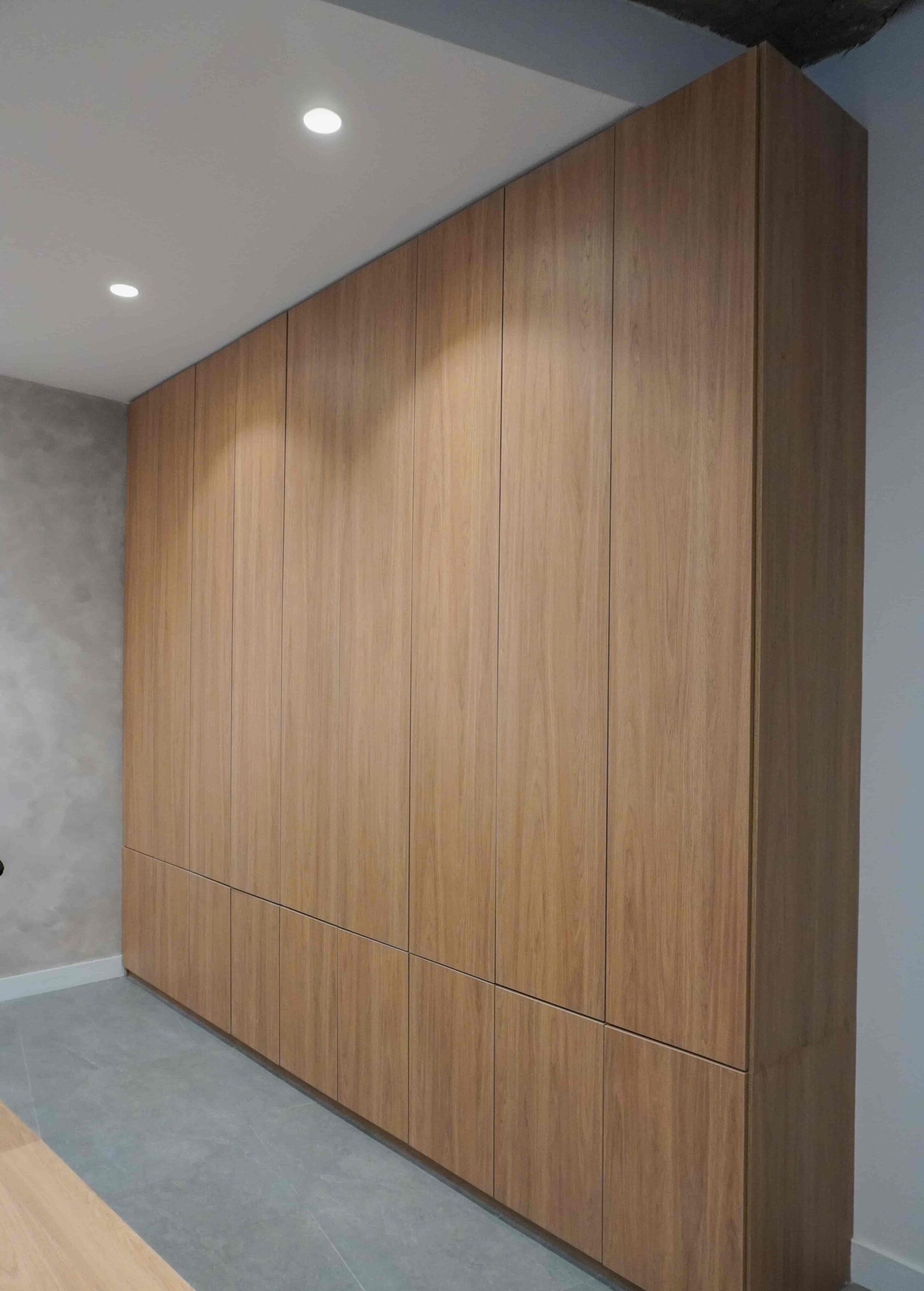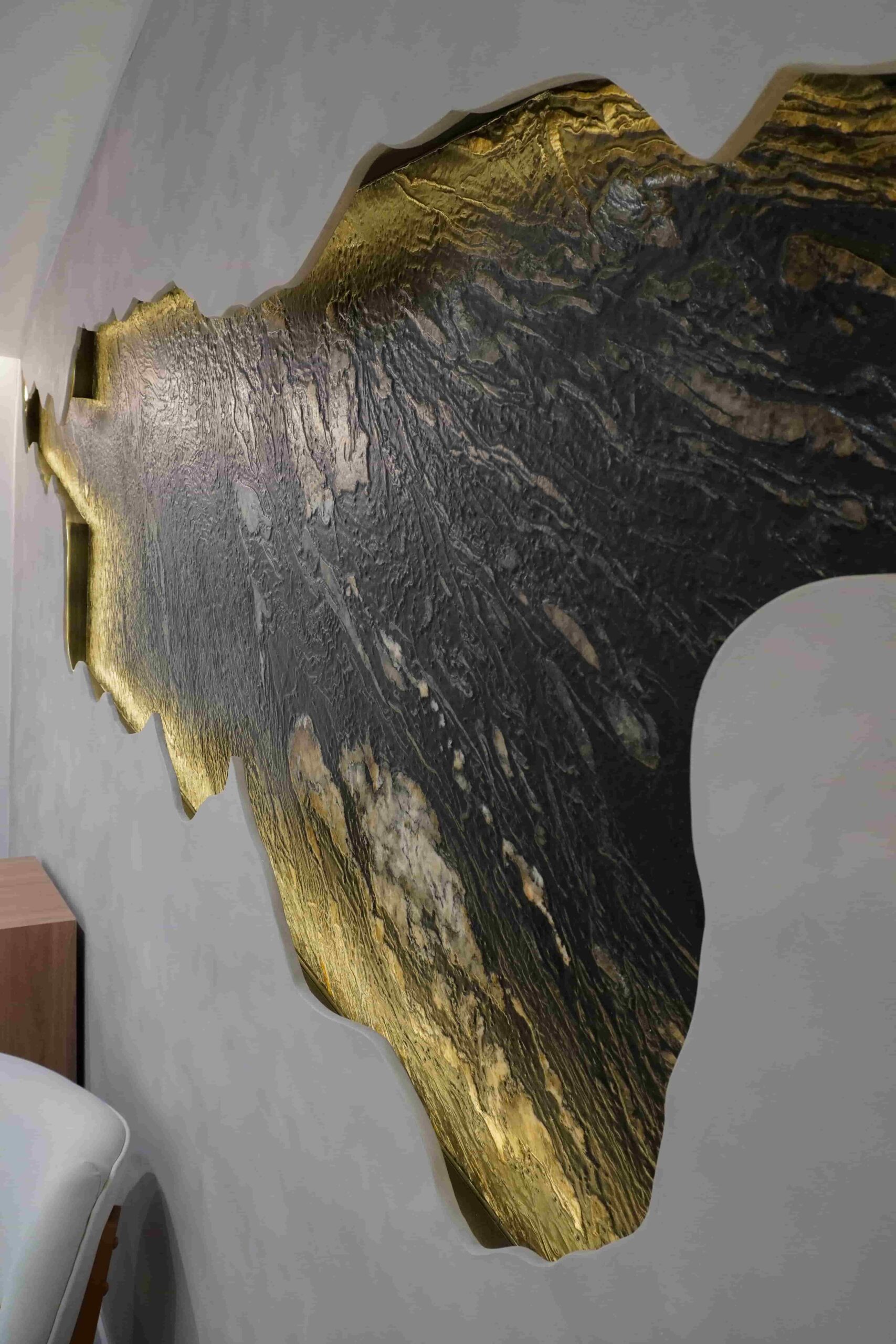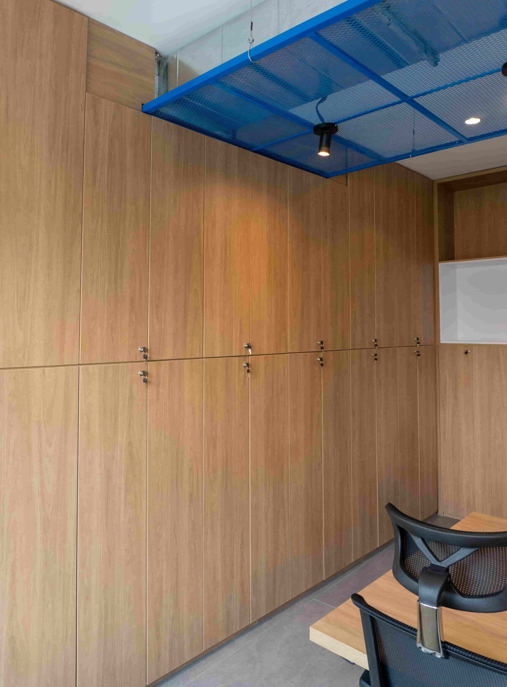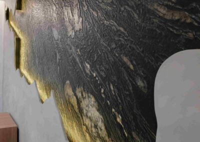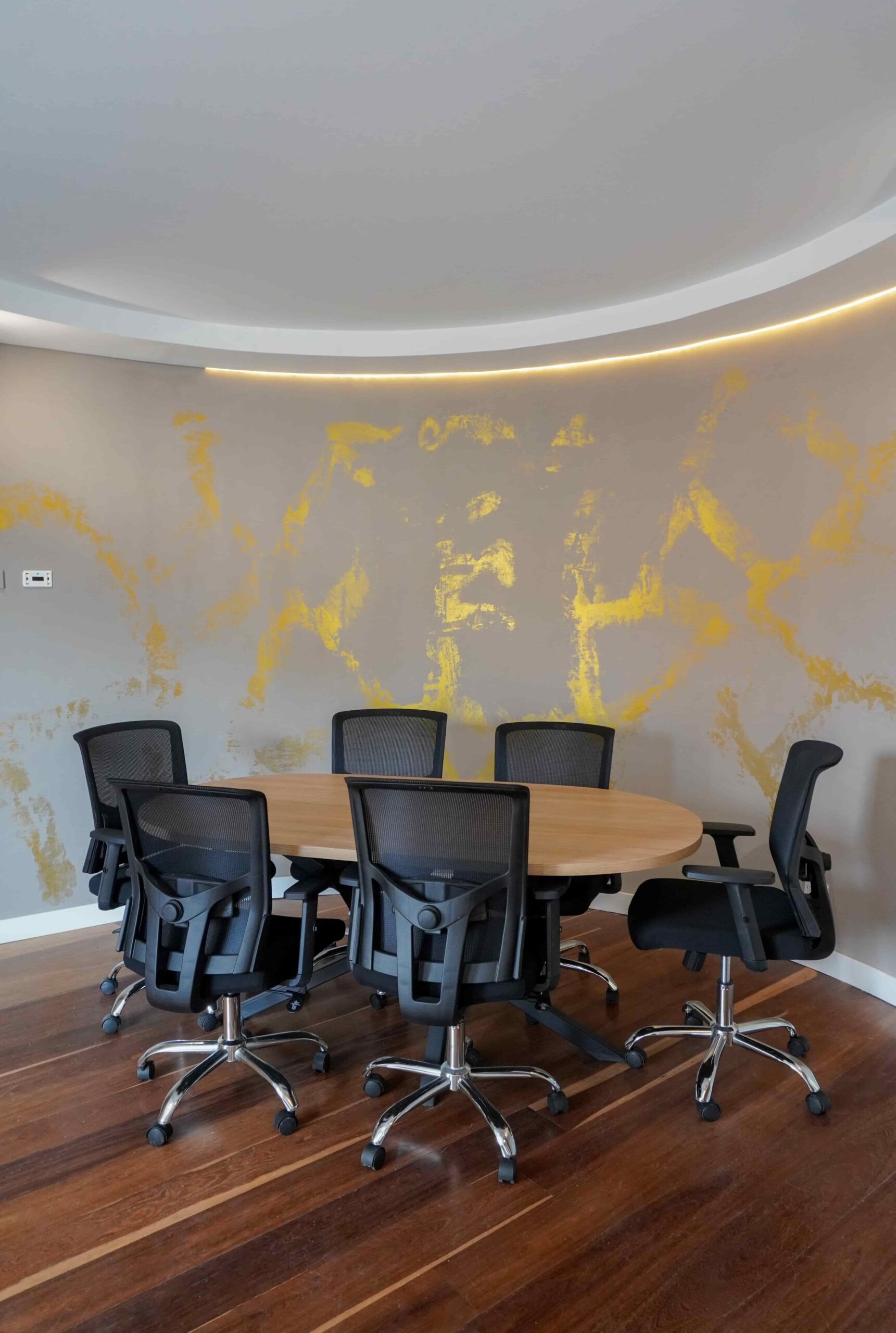 William y César soñaban con que su nueva oficina de geólogos fuera un reflejo de su identidad profesional: un espacio moderno, con carácter y lleno de simbolismo. El lugar que adquirieron tenía una distribución complicada, muros atravesados y ambientes muy oscuros. Desde el diseño de interiores se propuso un estilo industrial que aportara fuerza y autenticidad, acompañado de soluciones que dieran mayor amplitud y luz. Se planteó cambiar los pisos por porcelanato gris en gran formato, ideal para iluminar y modernizar el ambiente. Las salas excesivamente grandes se redistribuyeron para dar cabida a más oficinas y zonas de trabajo. Para aportar calidez, los muros se proyectaron con técnica lime wash en tonos grises y beige, mientras que el mobiliario en madera cálida y estructuras metálicas negras refuerzan la estética industrial. El gran gesto de identidad se diseñó en la recepción: una pared con grieta que deja ver una piedra natural, homenaje a la esencia de la geología.
